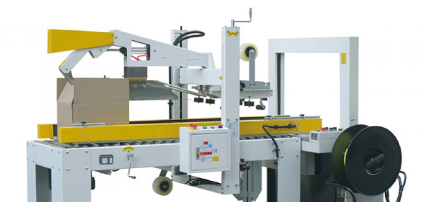 自动折盖封箱打包一体机是一款非常高效的自动化包装设备,相较于半自动封箱打包一体机,该机由PLC控制,可实现自动折盖、自动输送、自动封箱、自动打包,完全不需要人工干预,可单机使用,亦可配自动流水线实现无人化操作。